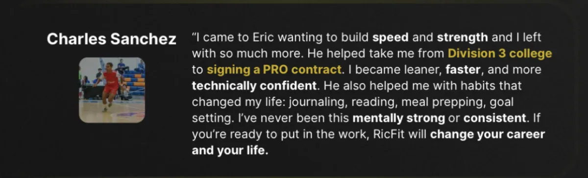 We get you in front of coaches. RicFit makes sure you're ready to shine when you get there.