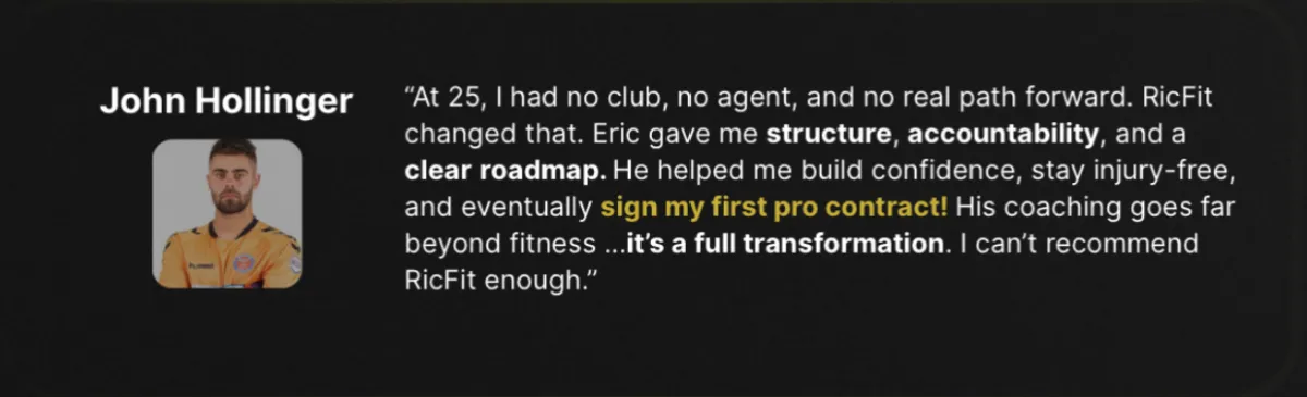 RicFit has a proven track record of helping secure professional contracts from MLS, MLS Next Pro, K League 1, Ligue 2, and many more — with a consistent upward trajectory!